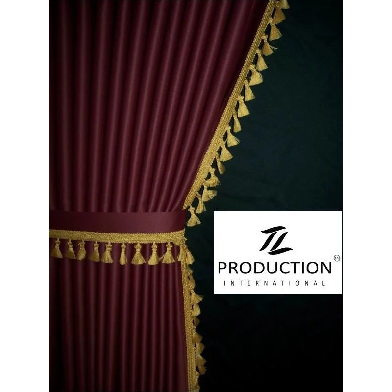 • LKW-Gardine Farbvariante bordeaux - Quasten honiggelb